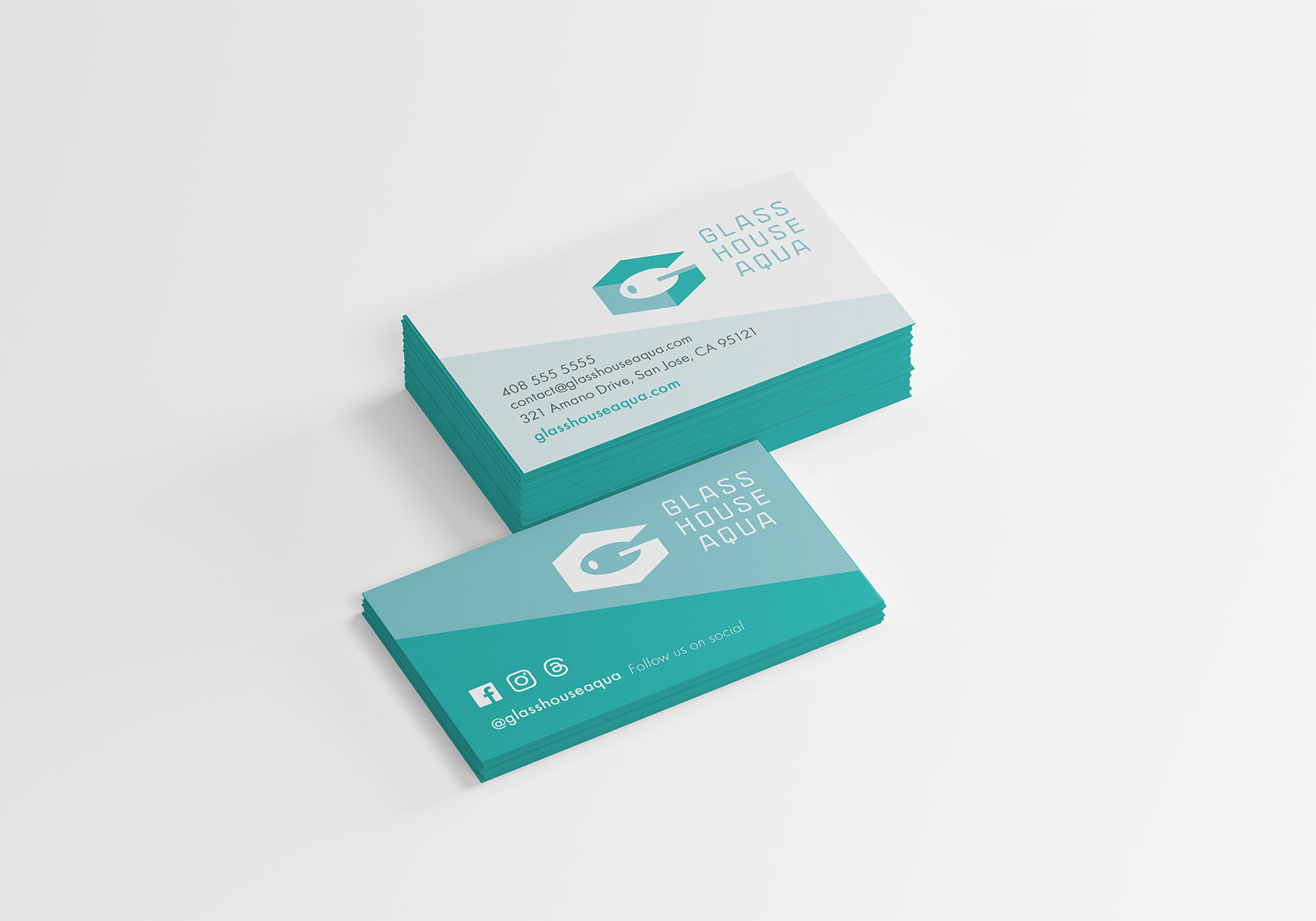 Brand colors and typeface. The teal colors are similar to the color of the glass edges in rimless low iron aquarium tanks.